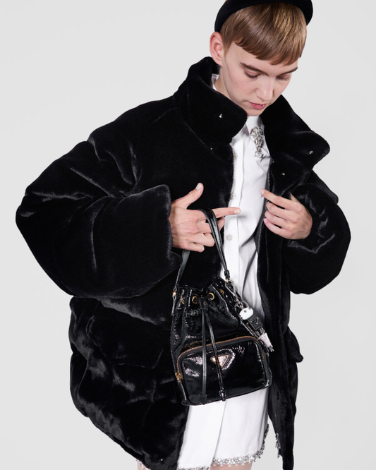 Prada duet naplak patent leather bucket bag