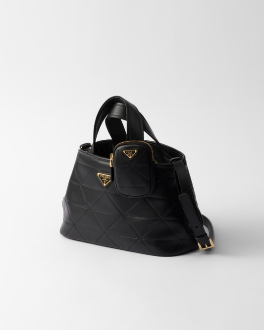 Small quilted leather tote bag