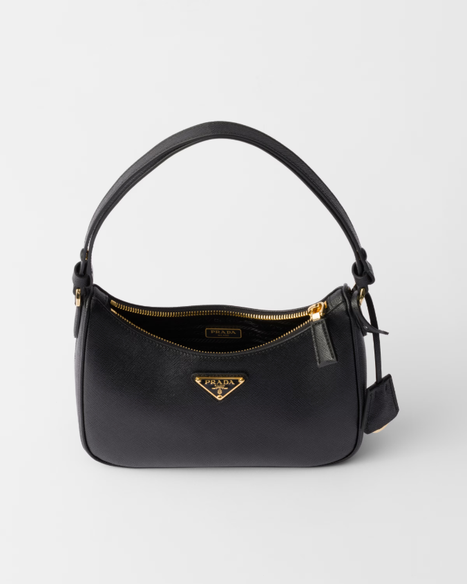 A harmonious design characterizes this bag made of Saffiano, a very high quality leather that has become an iconic material of the brand with its crosshatched texture. The accessory with a zipper closure and removable key ring is decorated with the metal triangle logo.