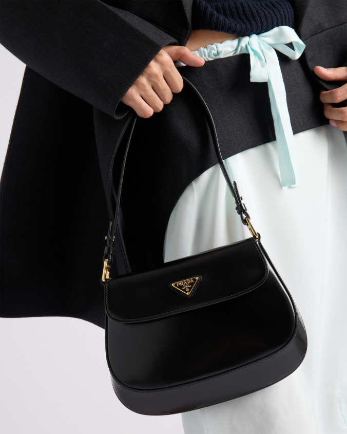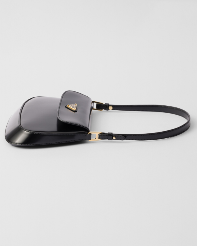 Reinterpretation of an iconic style from the '90s, the Prada Cleo bag has a handle with a modernist design made of fine Ayers leather, a refined touch that enriches the flap bag with light, curved lines.