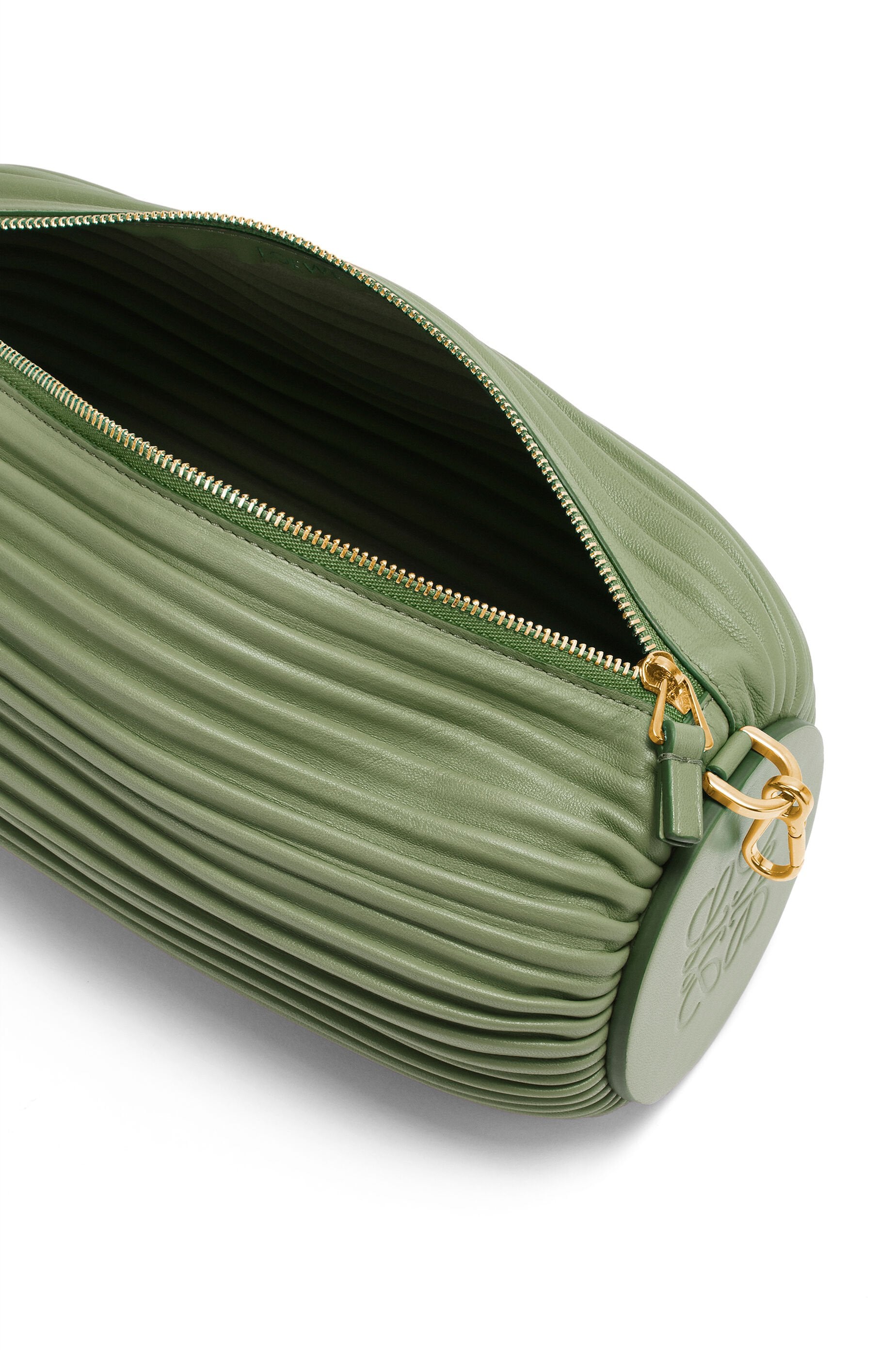 The Bracelet Pouch is a tubular bag that converts into a bracelet, finished with embossed plaques on each end. This version...See more + is crafted in pleated nappa lambskin.