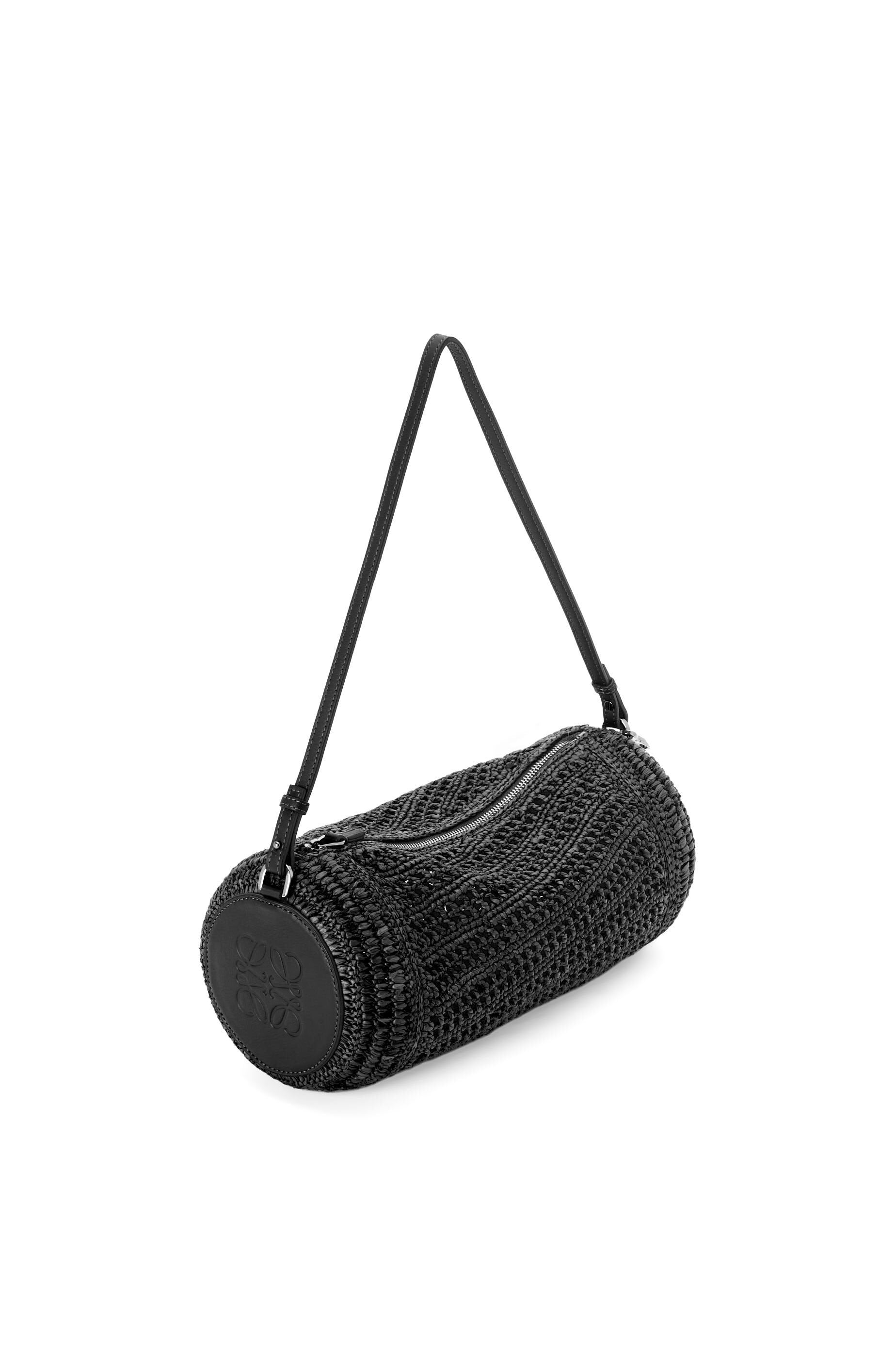 The Bracelet pouch is versatile tubular bag crafted in raffia and calfskin that converts into a bracelet. This bag is made...See more + in Spain using raffia leaves that have been cultivated, harvested, sun-dried and handwoven by artisans in Madagascar.