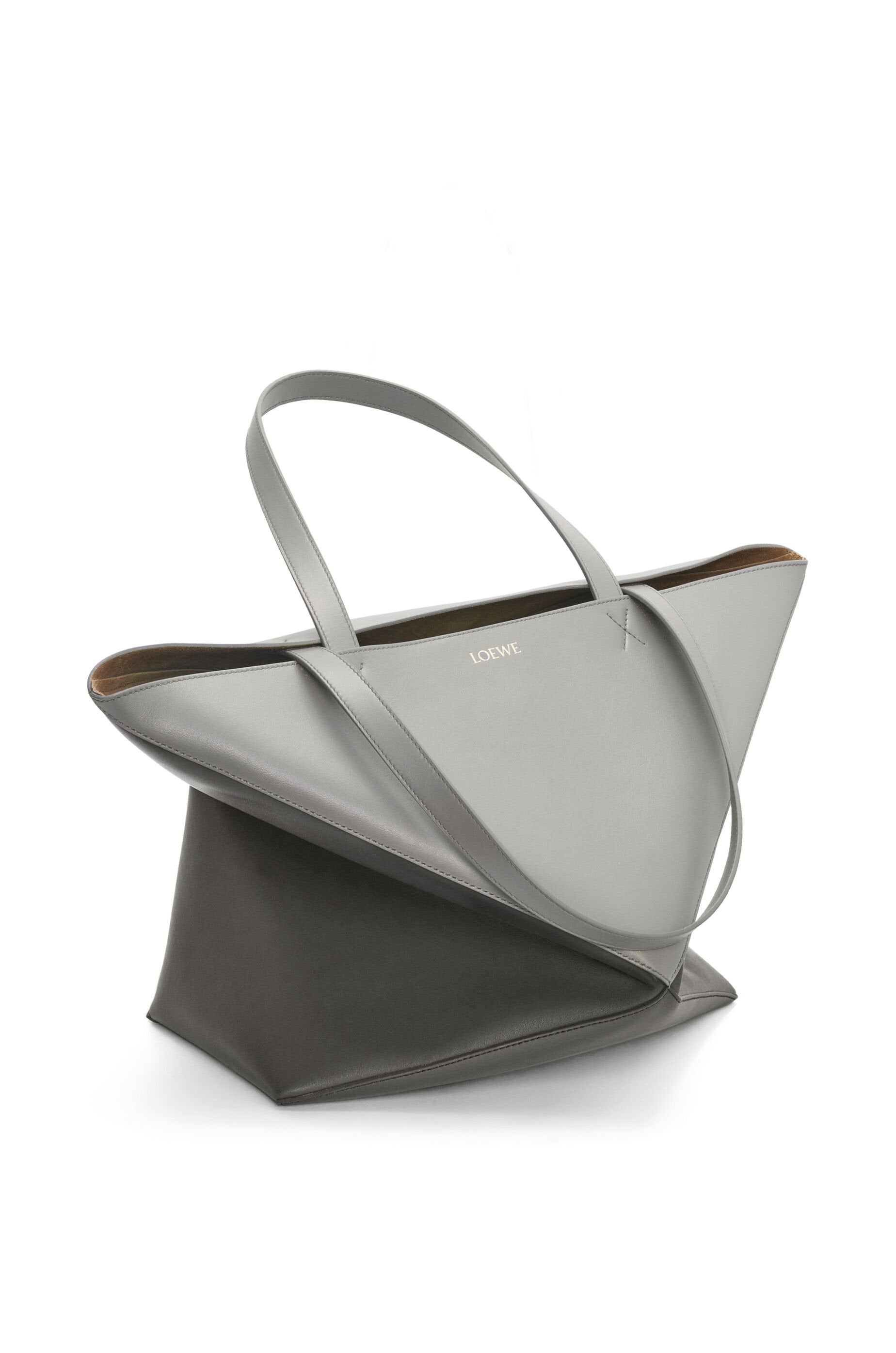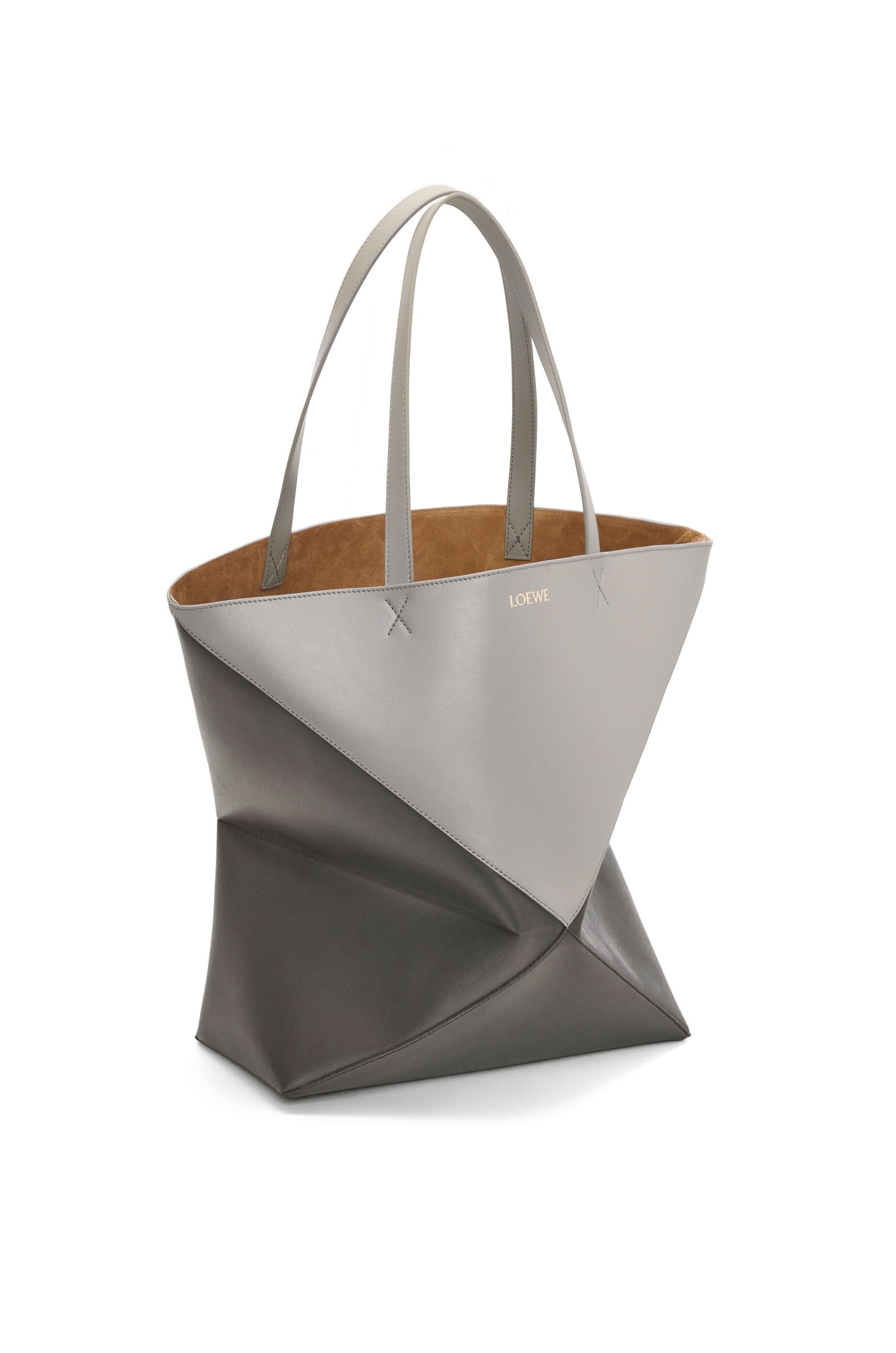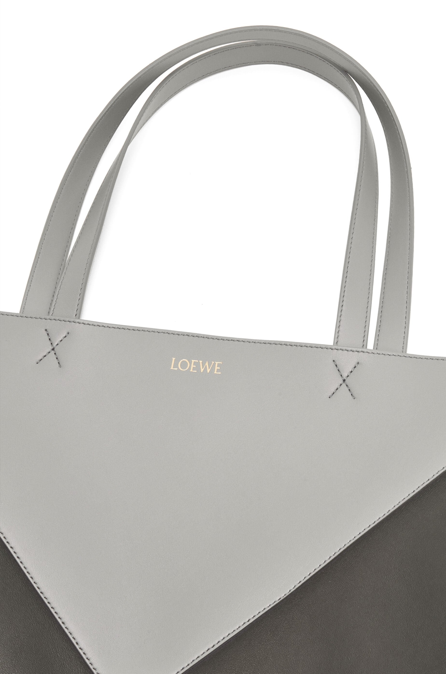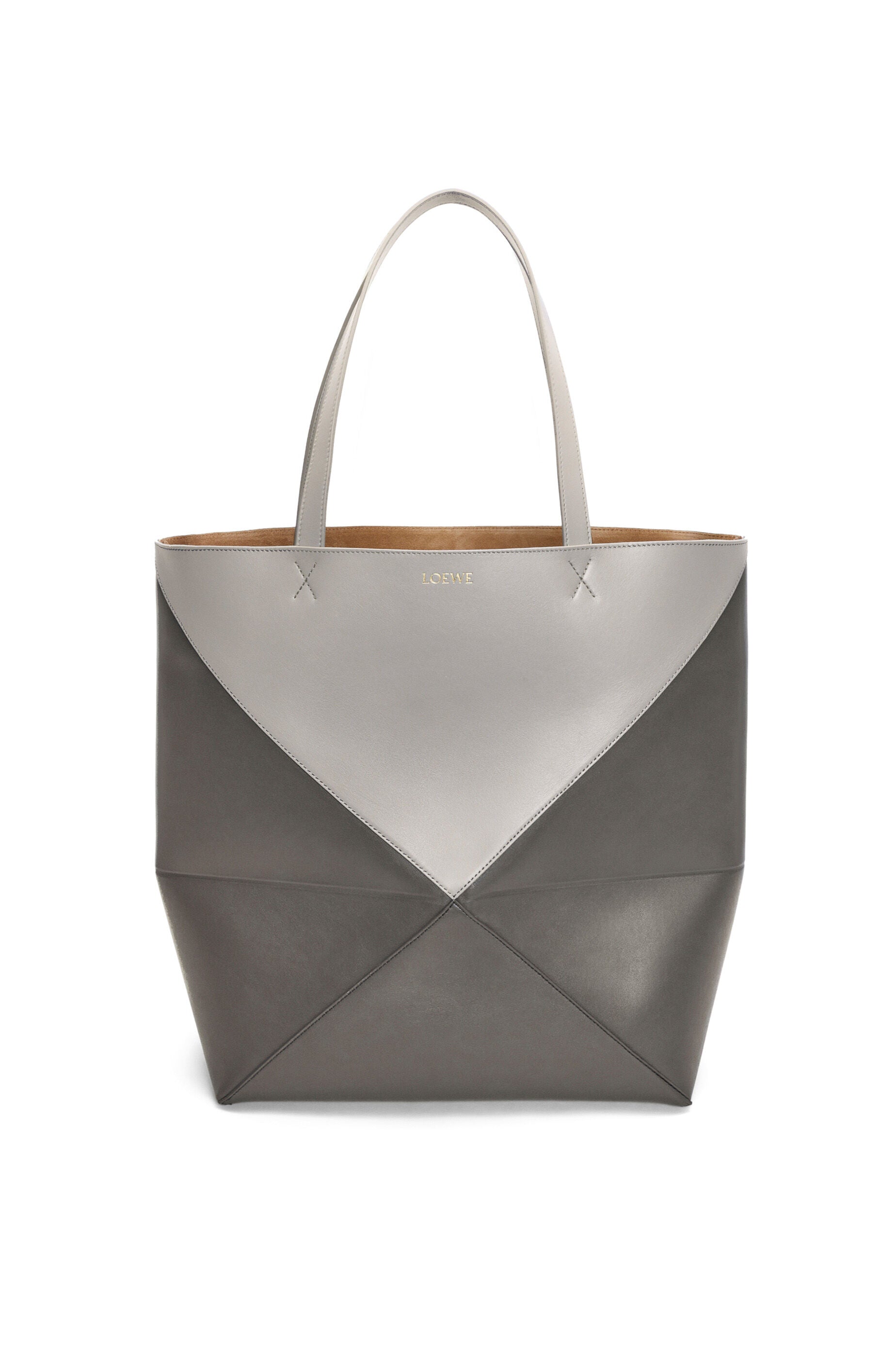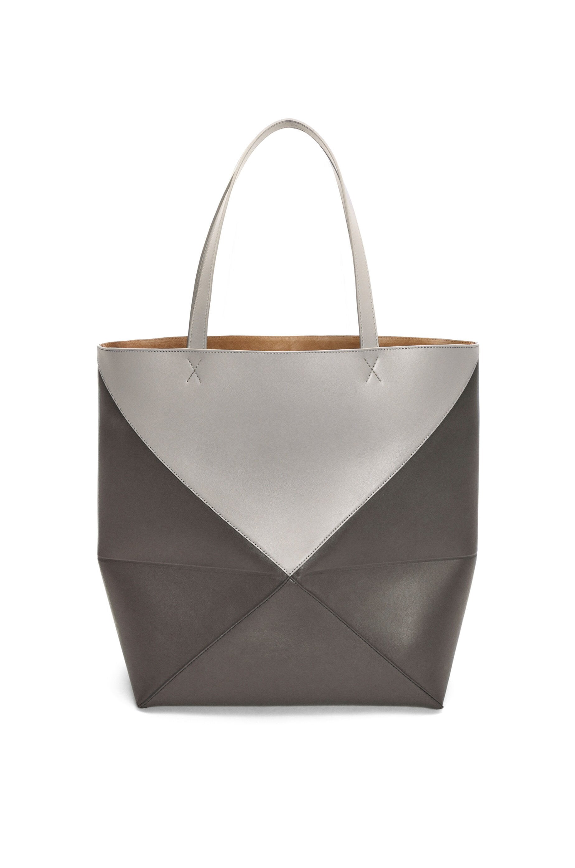 The Puzzle Fold tote is a soft and lightweight design inspired by the iconic bag, whose geometric lines are reimagined as...See more + graphic and architectural panels engineered to fold completely flat. This XL bicolour version is crafted in shiny calfskin