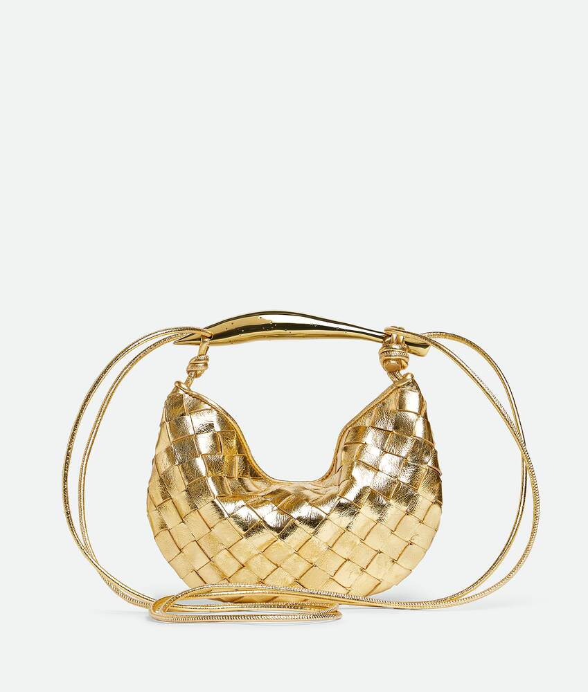 • Baby Intrecciato foggy mirror leather cross-body bag with metallic top handle