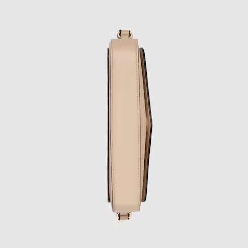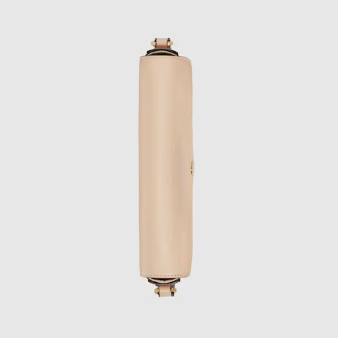 The initials of Founder Guccio Gucci continue to decorate leather accessories, connecting smaller contemporary pieces to Gucci's heritage. Here the emblematic GG motif plays on texture and a shiny finish to define this mini shoulder bag in a delicate light beige.