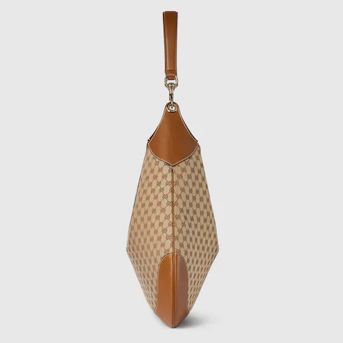Introducing the Gucci B, which draws inspiration from a 1950s archival style. This large shoulder bag, embodying the essence of its mid-20th century origins, is crafted from Original GG canvas which drapes on the body.