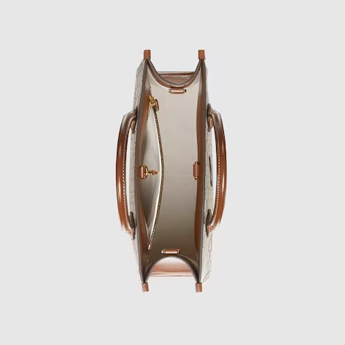 The Interlocking G has remained one of the most symbolic codes of the House since its introduction. The distinguishing emblem appears as a leather detail atop this tote bag. Completing the design's logo feel, the style is crafted from beige and ebony monogram canvas.