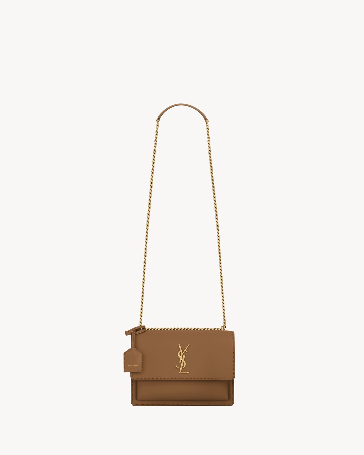 LEATHER-LINED FLAP BAG WITH METAL CASSANDRE AND DETACHABLE LEATHER CHARM.